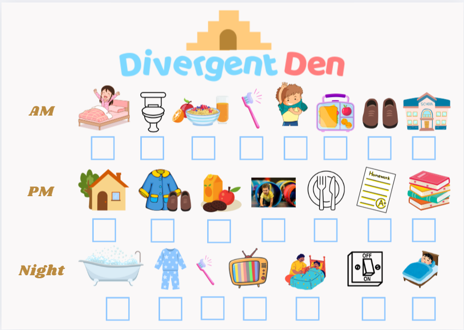 Designed to support neurodivergent children with structure, print once, laminate, and reuse every day for stress free routines!